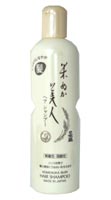 「米ぬか美人 ヘアシャンプー 335ml」は、天然ヤシ油系洗浄剤100%使用のヘアシャンプーです。さらに、米ぬかエキスや米胚芽油、海藻エキスの天然保湿成分に、アロエエキス、オタネニンジンエキス、センブリエキスの天然頭皮整肌成分を配合しました。天然ヤシ油系の洗浄成分がマイルドできめ細かな泡立ちで、髪や頭皮の汚れを落とし、米ぬかエキスなどの天然植物成分が、髪や頭皮をしっとりとしなやかに洗い上げてくれます。